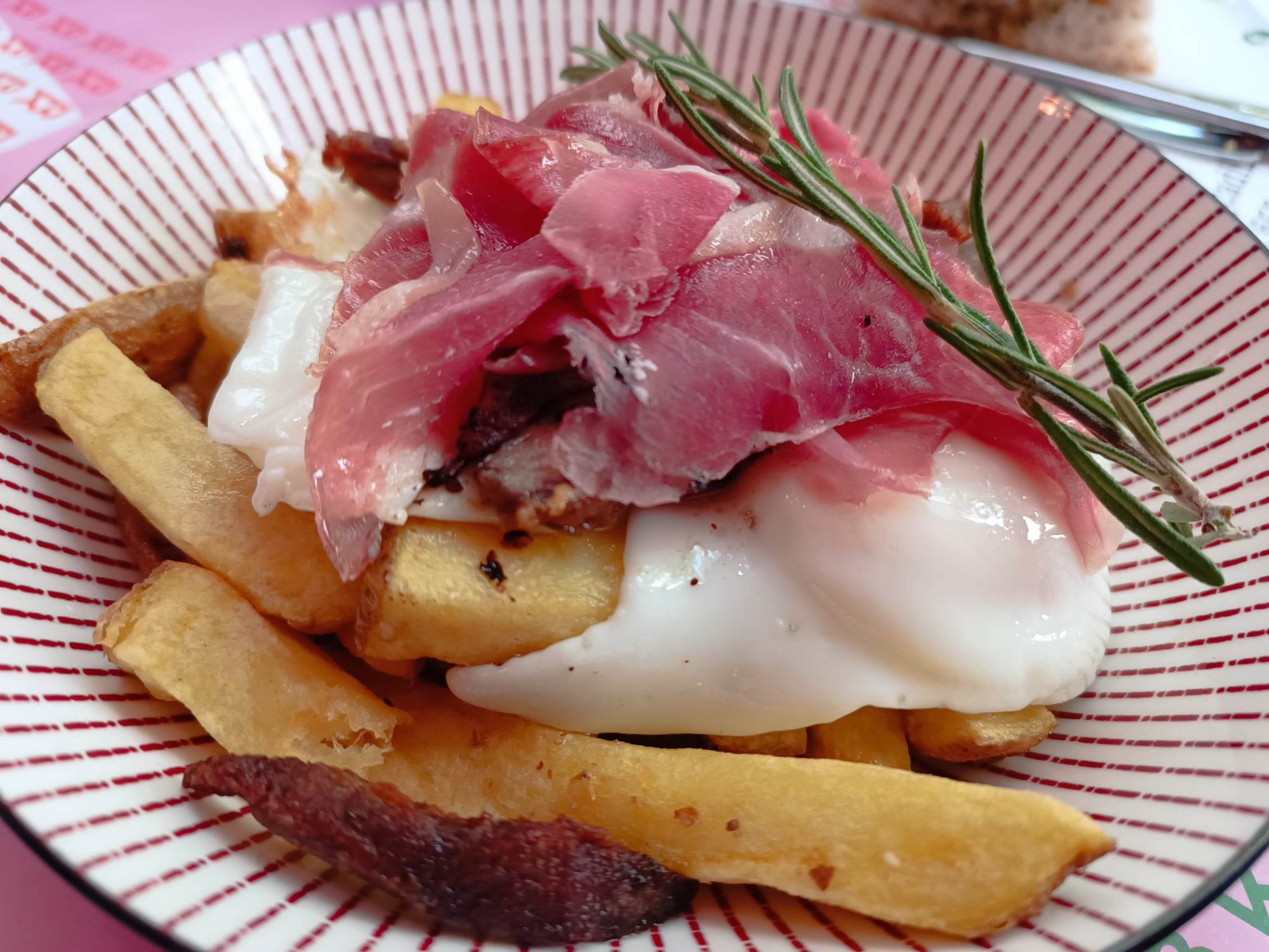 Huevos con patatas, jamón ibérico y lagarto ibérico