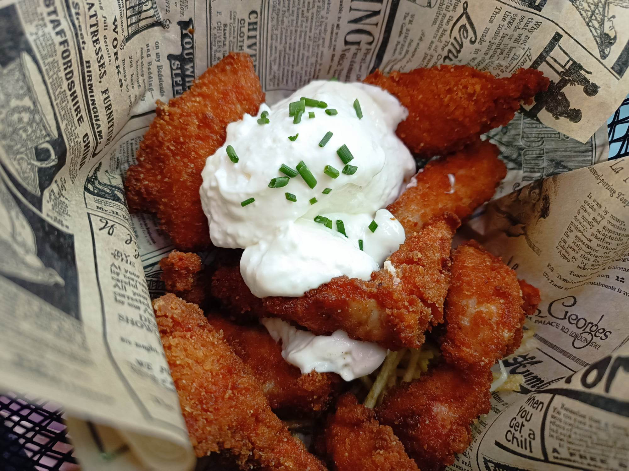 Frituras de tiras de pollo al curry con mayonesa de coco